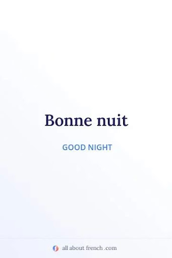 | Bon Nuit | A French phrase that translates to good night in English. It is commonly used as a way of bidding someone farewell or wishing them a peaceful and restful sleep. |